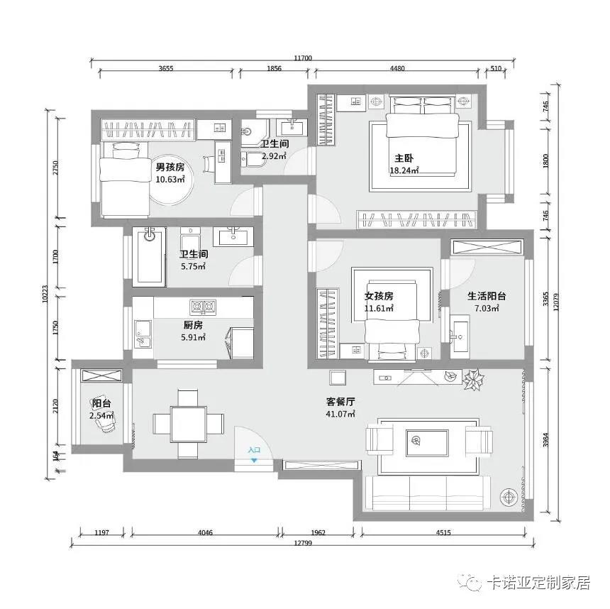 面積: 3房3廳2衛(wèi)2陽107m² (套內(nèi))