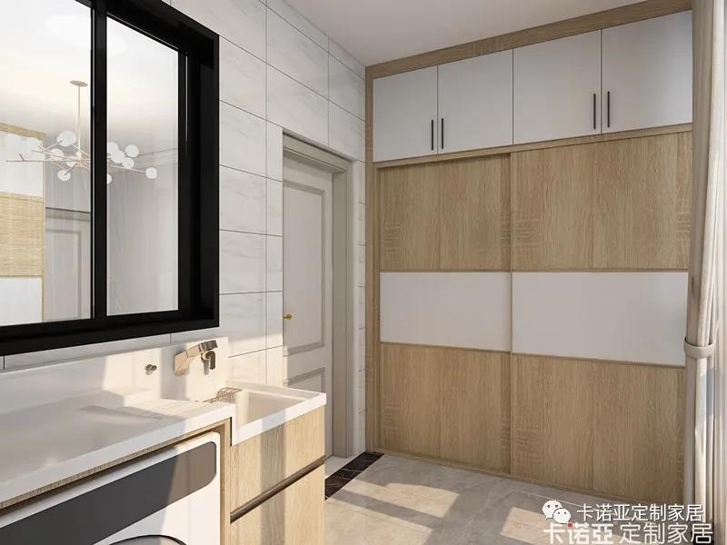 洗曬一體又休閑,陽臺(tái)兩邊打柜,一邊放洗衣機(jī),另一邊則設(shè)計(jì)了一個(gè)衣柜。