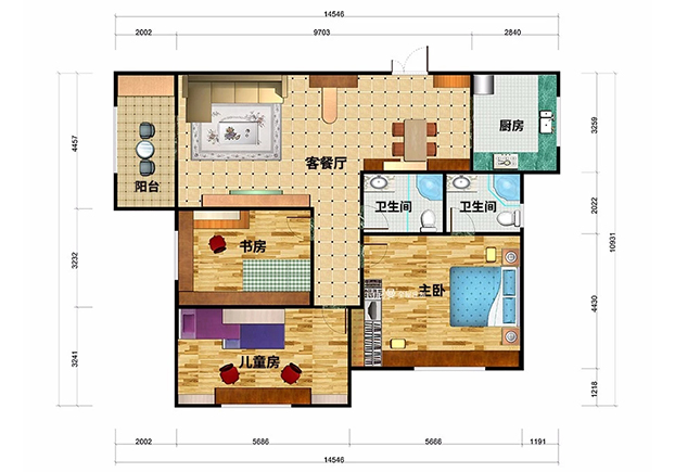 而且,書(shū)房這樣規(guī)劃還有一個(gè)好處是,以后兄弟倆長(zhǎng)大了,希望有自己的房間時(shí),書(shū)房即使不做整改,也能作為一個(gè)房間使用了。