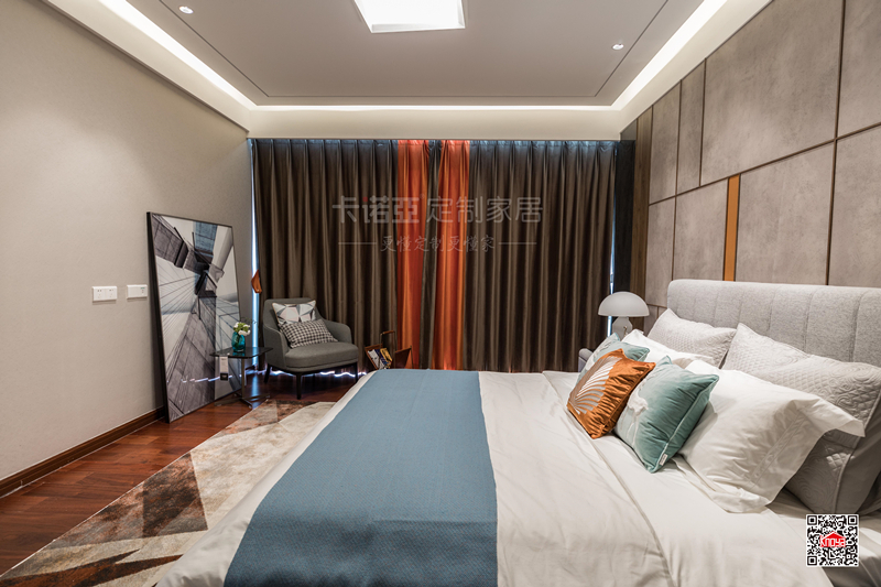 臥房各種色塊綻放,色塊雖多卻有層次感。