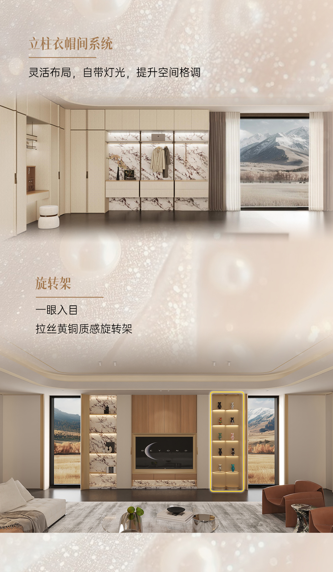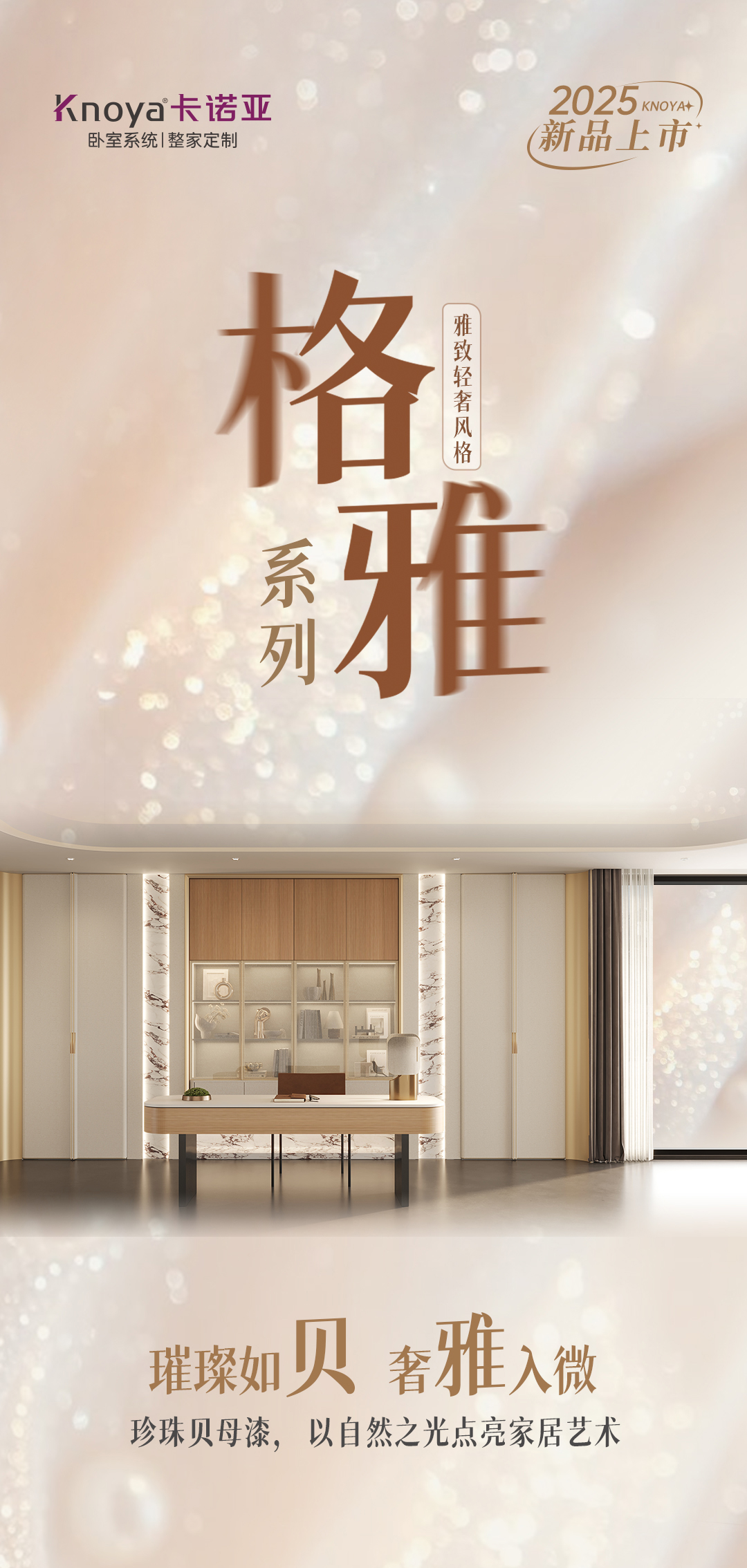 2025年新品系列,格雅系列 |雅致輕奢風(fēng)格從珠寶中獲得靈感,專(zhuān)注于體積、線性與移性的精妙把握,巧妙展現(xiàn)藝術(shù)與建構(gòu)間的微妙關(guān)聯(lián),以居者需求為基礎(chǔ),依據(jù)整體空間開(kāi)放度的細(xì)膩層次,打破傳統(tǒng)界限,賦予空間前所未有的靈動(dòng)與多元。人群定位:30至45歲藝術(shù)家家庭,對(duì)生活品質(zhì)持有極致追求