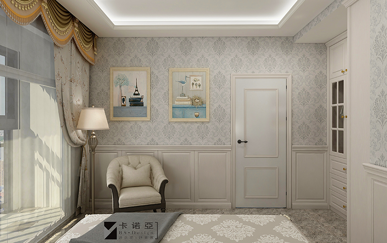 高原雪橡天然素凈的白,營造出極為潔凈素雅的家居環(huán)境,墻裙式護(hù)墻設(shè)計(jì)與歐式紋飾的壁紙、同色到頂衣柜融為一體,結(jié)合精致的吸塑造型、素雅的軟裝配飾、歐式造型窗簾、西洋掛畫,輕松營造出純凈、美好的簡(jiǎn)歐家居氛圍。