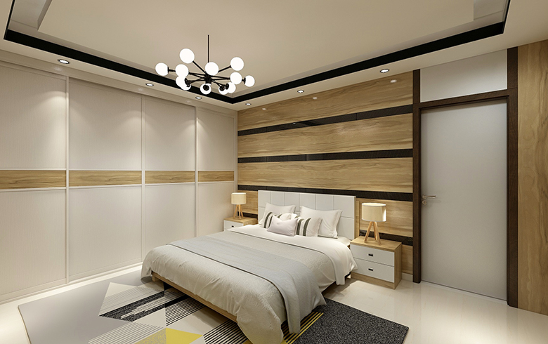 床頭護(hù)墻板清晰自然的橄欖木紋理,讓空間更具北歐風(fēng),色澤飽滿的黑鏡飾面點(diǎn)綴其中,散發(fā)高貴冷艷的光澤。