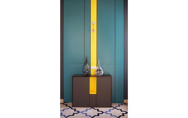 整堵護墻板以天湖藍為主色調(diào),活力橙點綴其間,采用創(chuàng)意的混搭撞色設(shè)計,瞬間點亮了墻面的活力與視覺沖擊力。