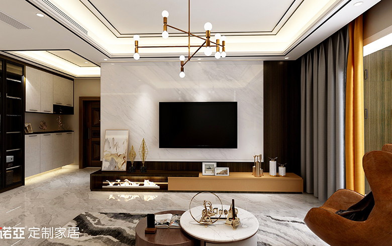 高級(jí)黑與高級(jí)灰做為表現(xiàn),黑白的對(duì)比鮮明,總給空間一種大大方方的利落感覺。選用帶有高級(jí)感愛馬仕橙,黑色及碳灰色,來演繹一種“低調(diào)的奢華”,令空間質(zhì)感更為飽滿。