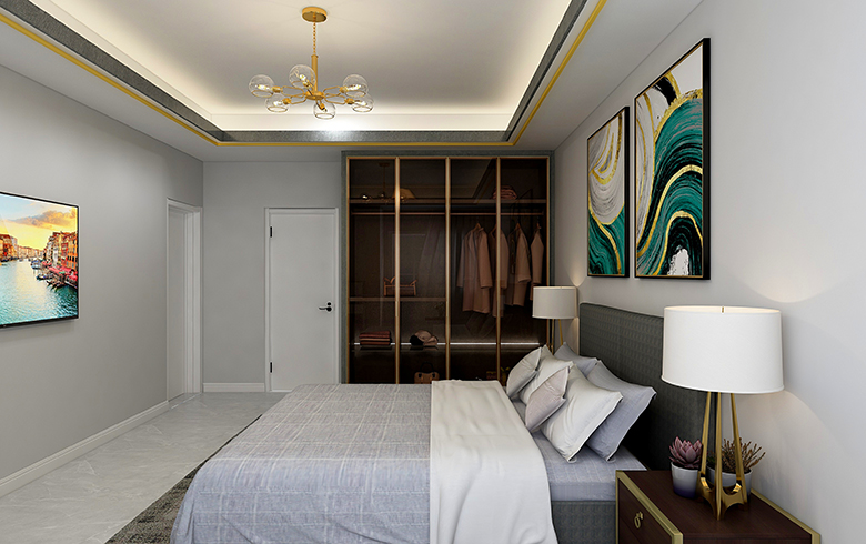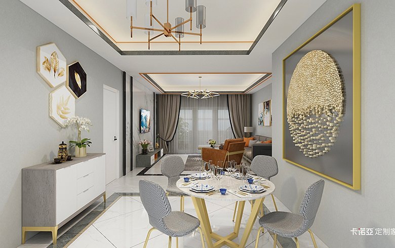 房屋空間四室兩廳兩衛(wèi),套內(nèi)面積111平米,四室分別是主臥,次臥(榻榻米),書(shū)房,衣帽間,滿足了三口之家的日常使用需求,使空間利用率達(dá)到最大化。全屋柜體采用深色板材,運(yùn)用玻璃門(mén)和淺色門(mén)板配金色拉手,通過(guò)棚線和家具顏色的搭配來(lái)達(dá)到風(fēng)格統(tǒng)一,打造輕奢風(fēng)格。客餐廳通過(guò)金色家具和軟裝,淺色的壁紙,體現(xiàn)溫馨的氛圍。