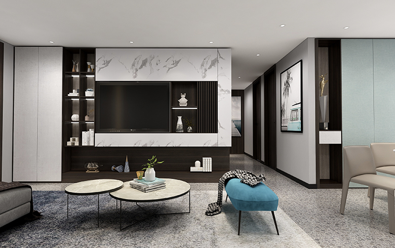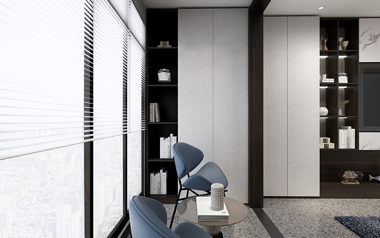 該方案為極簡(jiǎn)系列,現(xiàn)代風(fēng)格。本方案設(shè)計(jì)靈感來(lái)源于鴉頭棕雀的鳥(niǎo)巢,整體空間以木紋色為主,采用淡藍(lán)色為輔助色作為點(diǎn)綴??臻g戶(hù)型面積約為103m2,大致分為客餐廳、陽(yáng)臺(tái)、廚房、衛(wèi)生間、主臥、次臥以及書(shū)房。動(dòng)靜分區(qū),互不干擾。整個(gè)客餐廳色調(diào)有淺灰、黑色兩個(gè)色調(diào),視覺(jué)上顯得統(tǒng)一。廚房設(shè)計(jì)為L(zhǎng)型。主臥床頭背景設(shè)計(jì)兩層,第一層與柜體顏色相呼應(yīng);第二層與柜門(mén)顏色呼應(yīng)。顏色統(tǒng)一,層次與立體感強(qiáng);通過(guò)橙色調(diào)進(jìn)行點(diǎn)綴,增加空間的靈動(dòng)性。次臥的主色調(diào)是淺灰色,是深受現(xiàn)代主流的配色,給人一種親近的感覺(jué)。書(shū)房背景以淺色與護(hù)墻的顏色統(tǒng)一,但橙色最為點(diǎn)綴,不會(huì)顯得單調(diào)沉悶。