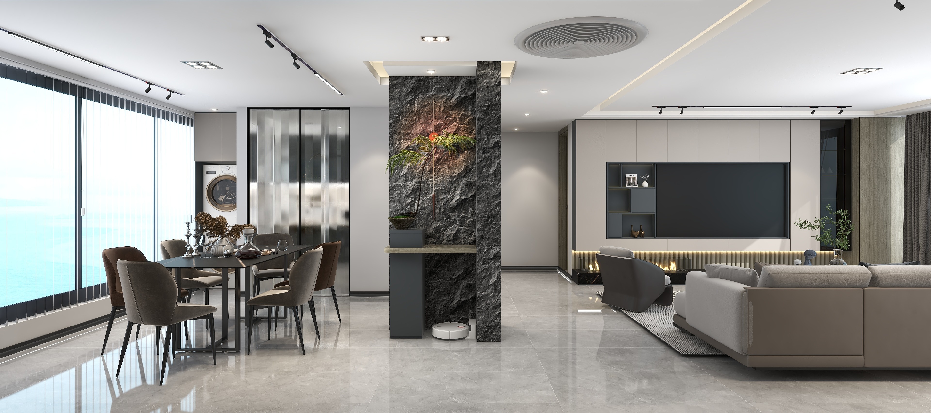 《櫟白》本案是四口之家,有三歲的孩子和老人,設(shè)計師根據(jù)每個人的需求與習(xí)慣重新規(guī)劃了空間,保留了三個房間,整體色調(diào)運用了莫蘭迪的配色靈感,卡諾亞主要打造的是柜、墻、門一體化設(shè)計,同色系的高顏值整家,整體以收納娛樂生活為一體,以靈活互動與自由開放為主旨,適當(dāng)?shù)牧舭祝瑑?yōu)化細(xì)節(jié),衍生個性,締造出視野闊朗的簡約格調(diào)。