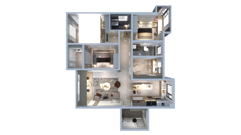 本作品是為解決一家人的生活需求所創(chuàng)作。作者希望在紛擾的世界有每個(gè)人都有屬于自己的一方天地,讓家的意義更明顯。讓房間產(chǎn)生溫度的不僅是收納,功能,顏值,還有對(duì)生活和家的熱愛(ài)。設(shè)計(jì)理念:顏值即是正義,以形式表現(xiàn)空間,形式追隨功能,超越功能。整家之美|第五屆卡諾亞杯全國(guó)家居空間設(shè)計(jì)大賽