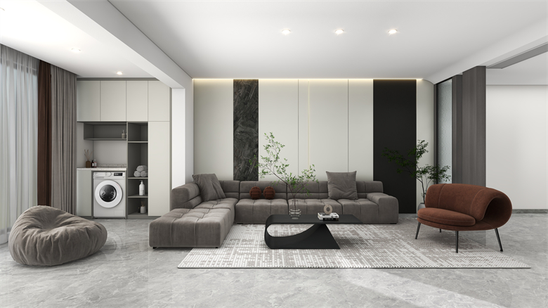 本案以現(xiàn)代簡約風為主要設計特色,黑白灰色調相托,重視室內的使用功能,強調室內布局與功能分區(qū),家居陳設與空間的密切配合。設計理念: 將設計融入人性 將家居帶入休閑自在的情境整家之美|第五屆卡諾亞杯全國家居空間設計大賽