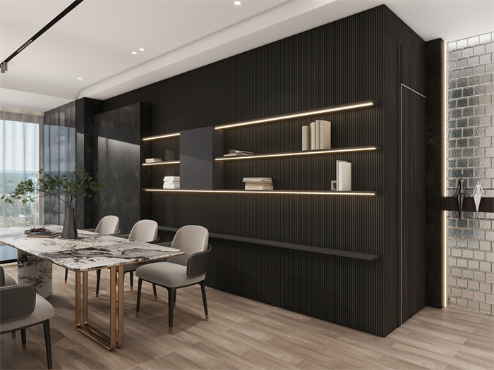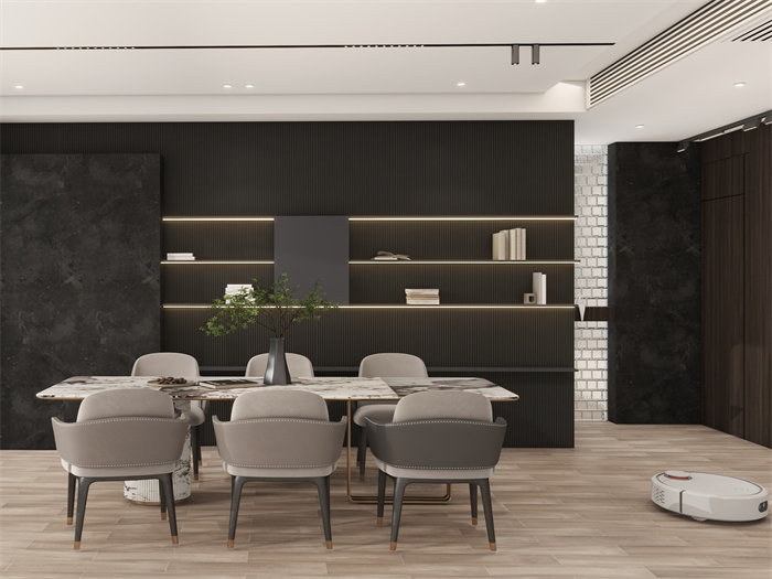 作品簡(jiǎn)介:人們的生活節(jié)奏相對(duì)較慢,故在設(shè)計(jì)階段我希望整體的氛圍是精致的、是有沉穩(wěn)的氛圍感。室內(nèi)空間運(yùn)用線條與幾何造型的穿插組合,柔美的弧形造型,弱化空間棱角,客廳弧形造型,引入空間場(chǎng)景,懸浮頂內(nèi)嵌燈光,用心感受這份柔和與溫馨。它以高品質(zhì)、設(shè)計(jì)感、舒適、簡(jiǎn)約為風(fēng)格特色點(diǎn)。摒棄傳統(tǒng)奢華風(fēng)格?;貧w生活本真,家居空間給人時(shí)尚簡(jiǎn)約、氣質(zhì)優(yōu)雅且不失溫馨舒適的感覺。愛生活到極致,不留遺憾。