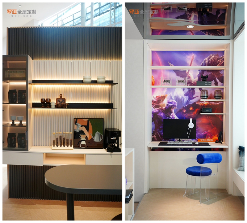由于生長(zhǎng)環(huán)境不同,他們對(duì)家的定義也完全不同。在他們看來(lái),家已經(jīng)不止是一個(gè)睡覺(jué)吃飯的地方,也是社交、辦公、娛樂(lè)的場(chǎng)所,是這屆年輕人生活方式的全面載體。羅亞全屋定制對(duì)于產(chǎn)品力的構(gòu)建,就是回歸年輕消費(fèi)群體深層次的需求,以主題場(chǎng)景、生活方式重構(gòu)Z世代的時(shí)尚家居。這次展會(huì)展示的“咖啡時(shí)光、心靈療愈、萌寵樂(lè)園、怡樂(lè)花藝、文創(chuàng)閱讀、悅動(dòng)生活”等多個(gè)主題場(chǎng)景,展示年輕人熱愛(ài)的生活方式,除了視覺(jué)感官的愉悅,還滿足情緒感受,是羅亞全屋定制洞察年輕消費(fèi)者的代表作。