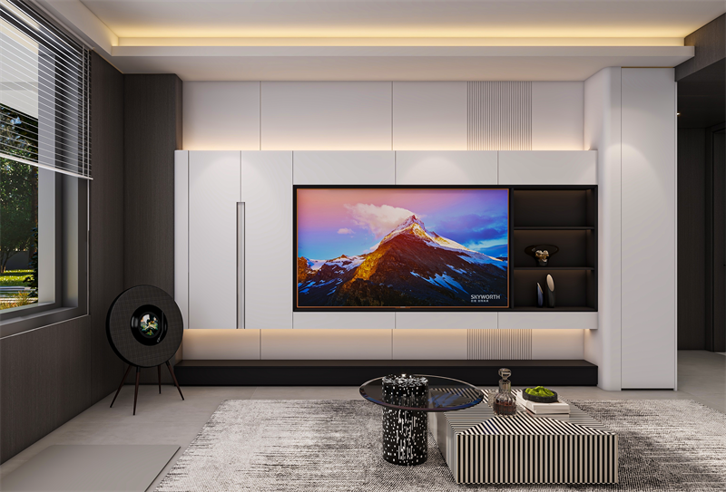電視背景墻采用簡(jiǎn)潔流暢的線條,與簡(jiǎn)約的“晨露白”色彩完美融合,弧形轉(zhuǎn)角過(guò)渡,展現(xiàn)一種簡(jiǎn)約而不失精致的柔美感。電視柜采用高端定制精湛工藝,包括黑科技的懸浮設(shè)計(jì)+柜中柜設(shè)計(jì)+拉米諾/無(wú)孔工藝,打破傳統(tǒng)墻面的厚重感,賦予空間輕盈靈動(dòng)的觀感。