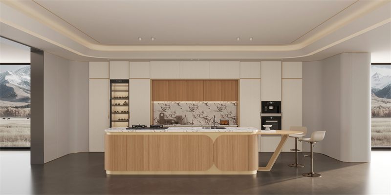 ·原創(chuàng)設(shè)計語言:源自鉆戒輪廓的門型,以戒指拉伸開的獨(dú)特輪廓融入門型設(shè)計,以左右圓弧+上下裝飾線勾勒立體層次,搭配鋅合金拉手,是功能與藝術(shù)、創(chuàng)新的完美融合;游艇造型中島臺與花瓣門板的組合,將豪華游艇的美學(xué)融入廚房空間。