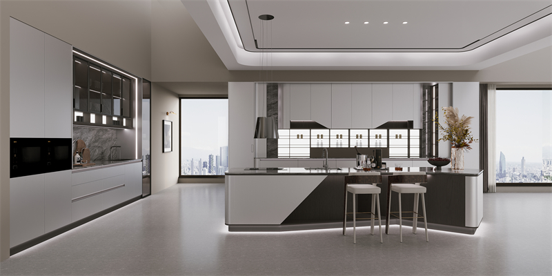 ·智能功能賦能:電動升降煙機(jī)、吊柜電動升降機(jī)等智能配件,實現(xiàn)隱現(xiàn)自如的功能美學(xué);立柱衣帽間系統(tǒng)自帶燈光,搭配西班牙蘭伯特收納五金,奢享收納儀式感。