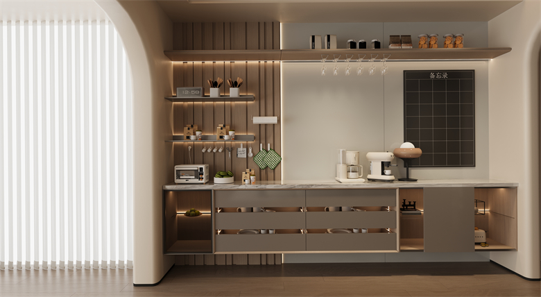 布局設計上,羅亞全屋定制更是打破了家居就該有固定模樣的陳規(guī)。餐廳與陽臺不再是割裂的存在,而是被打造成聯(lián)動的“咖啡區(qū) + 品酒區(qū)”;早晨在這里沖一杯手沖,用咖啡香喚醒元氣;夜晚調(diào)一杯利口酒,讓微醺消解疲憊。