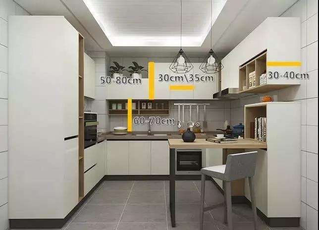 一個人性化的廚房,尺寸設計是關鍵。臺面高度、吊柜的深度和高度、地柜高度都必須要符合人體工程學,使用起來才會更舒服。