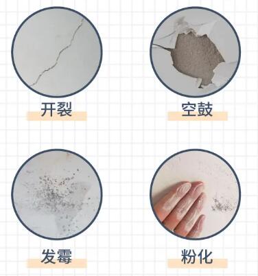 老房墻面即使看起來沒什么問題,也要驗明是否有開裂、空鼓、發(fā)霉、粉化等問題,如有,則必須全部鏟除,重新批灰、刷墻。