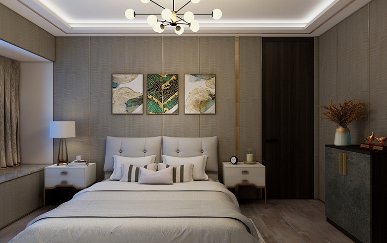 臥室作為休息的地方,在進行裝修設(shè)計時不可采用太過明亮的燈光照明,那樣會太過刺眼,影響到睡眠質(zhì)量,一般在燈光上的選擇多以柔和偏暖的顏色,營造出寧靜祥和的氛圍。