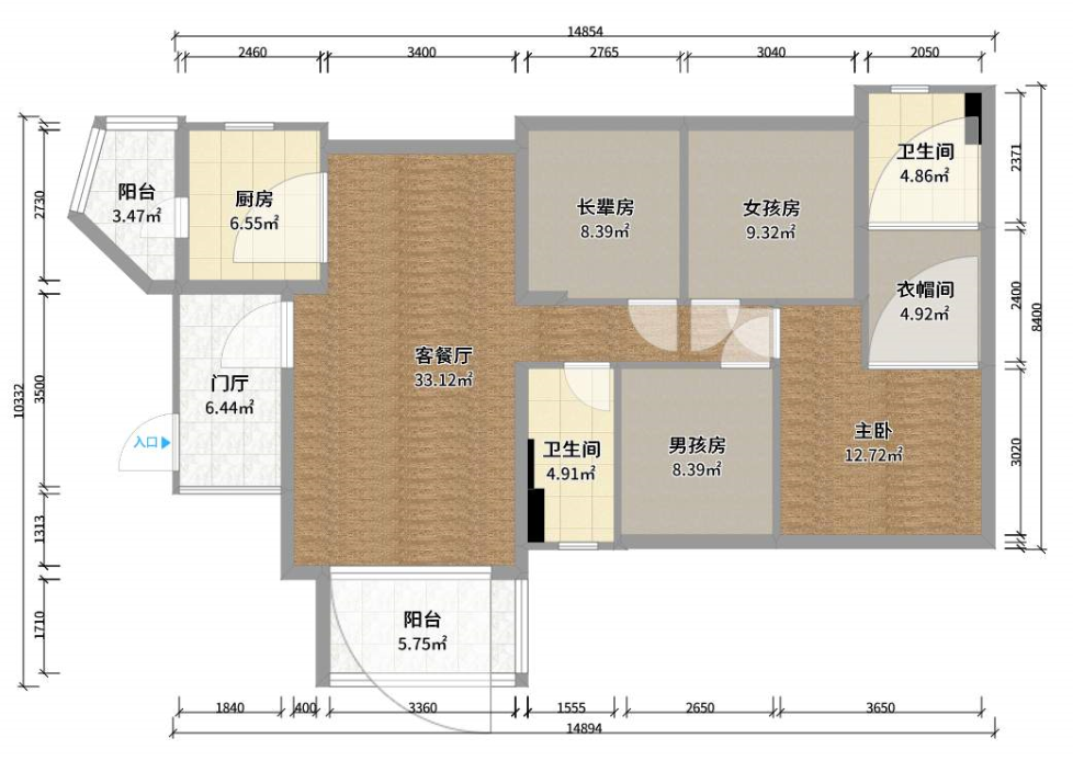本次案例的房子朝向是東,通風(fēng)不錯,每個空間都不小。要是能好好設(shè)計一下,住50年都沒問題。