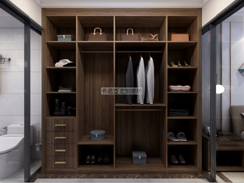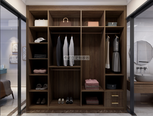 梳妝臺斜對面是衣帽間,滿足日常衣物雜物的收納需求。