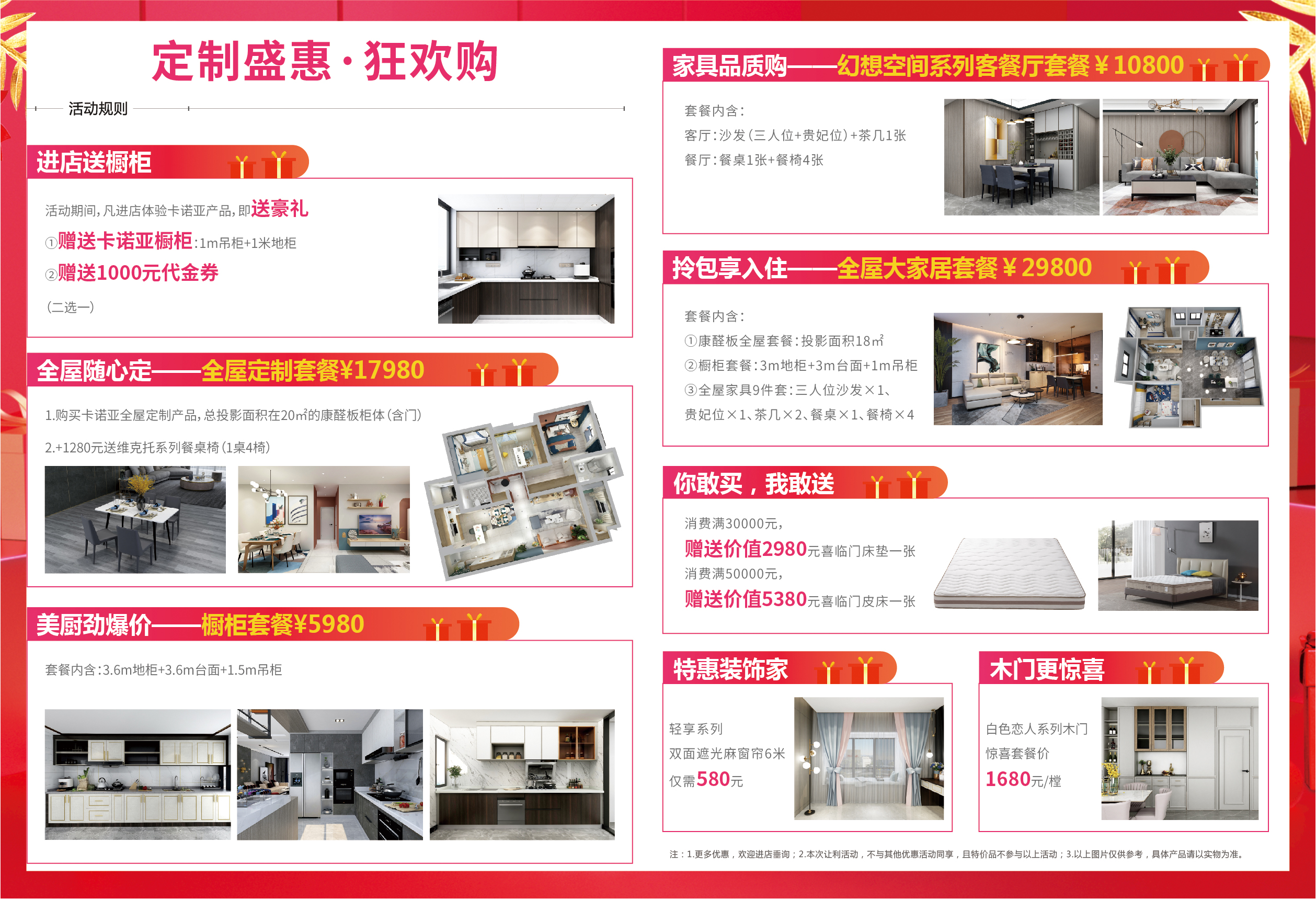 活動11月20日至12月12日晚24時截止,卡諾亞提前引爆雙十二,歡迎蒞臨卡諾亞當(dāng)?shù)亻T店咨詢、免費(fèi)預(yù)約設(shè)計。在此預(yù)祝大家節(jié)日快樂,理性消費(fèi)不剁手,買到健康環(huán)保的定制家居,以及高性價比的好物,早日實(shí)現(xiàn)新年住新家的愿望。