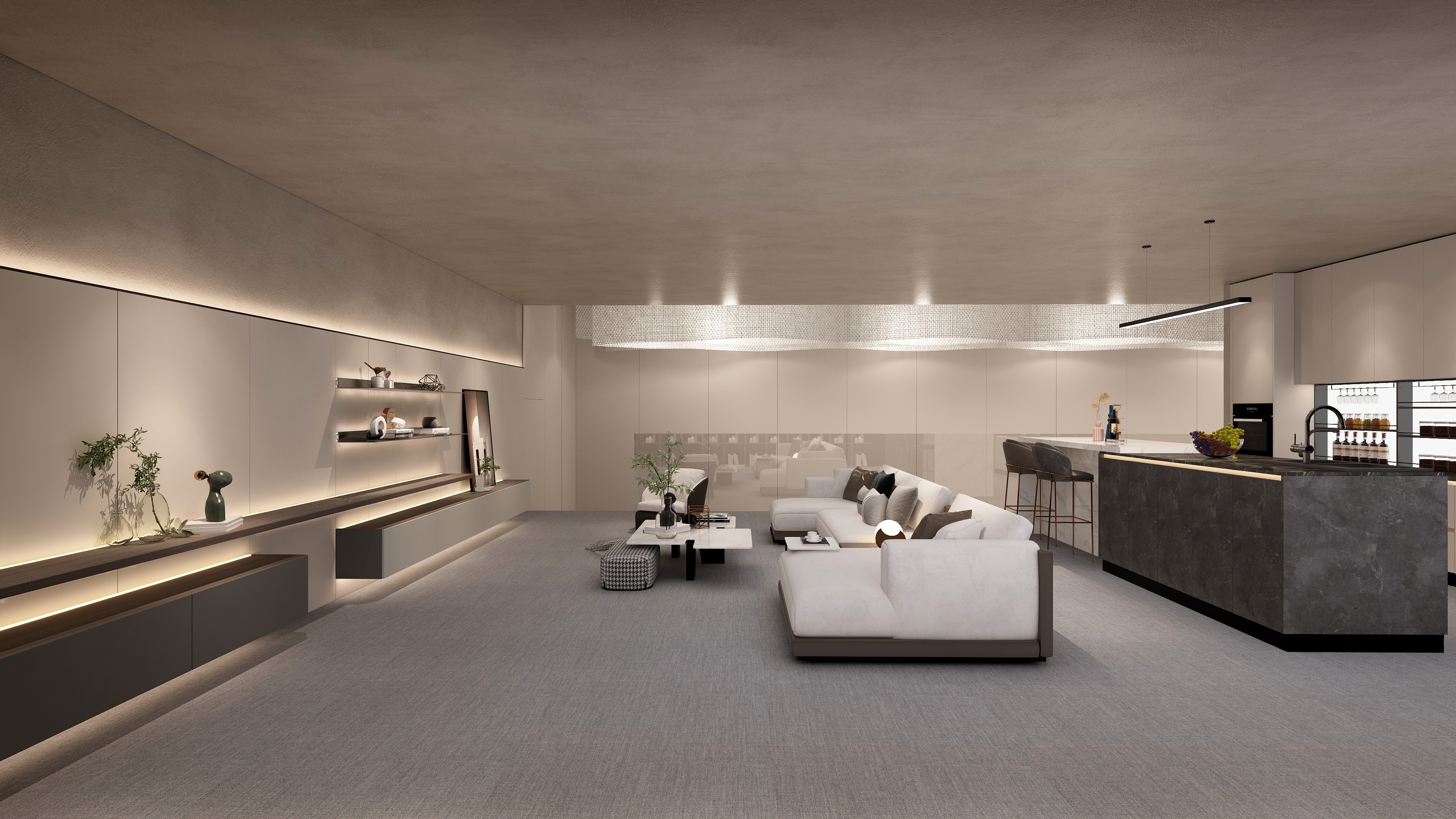 本屆展會卡諾亞展館,采用全新的MIX混搭設(shè)計理念,現(xiàn)代風(fēng)格與輕奢風(fēng)格創(chuàng)意混搭,展館樣板間給人耳目一新之感,采用同步國際潮流家居的輕奢花色,如澀黑、星光灰、云巖灰、和風(fēng)木、流光淺棕、流啞淺棕等,通過設(shè)計師的巧妙搭配和撞色設(shè)計,淡雅的色調(diào)搭配莫蘭迪色系,營造充滿色彩立體層次質(zhì)感的精致空間。