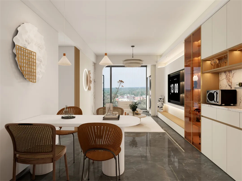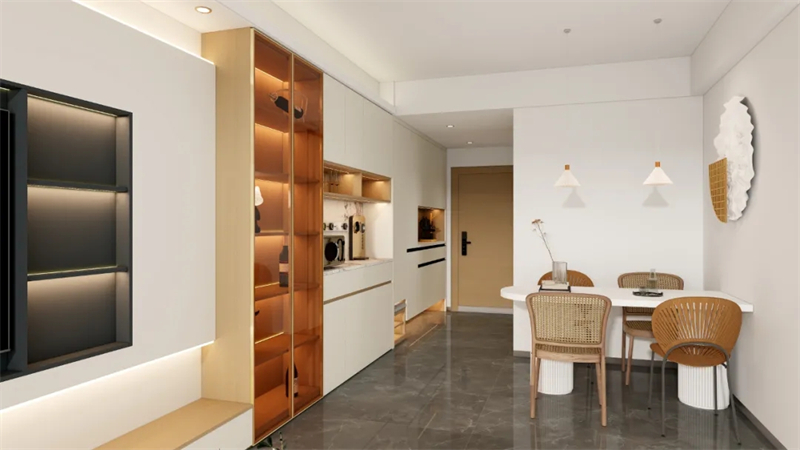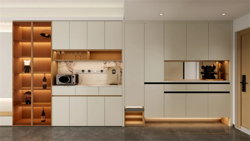 餐邊柜與玄關(guān)柜、電視柜一體設(shè)計