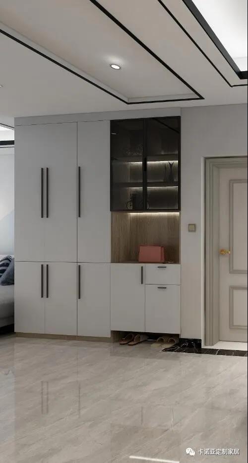 嵌入式的鞋柜,充分利用了邊角空間,也保證了良好采光,給入戶空間增加了幾分趣味。封閉與開放結(jié)合的鞋柜、中間鏤空、玻璃門的應(yīng)用、底部架空的設(shè)計(jì),這些細(xì)節(jié)都是巧思細(xì)致的設(shè)計(jì)。