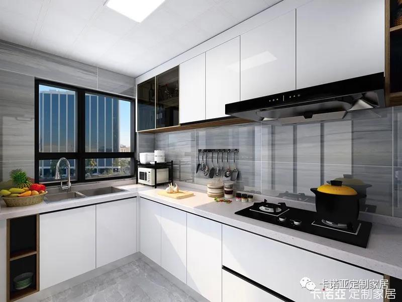 珍珠白廚柜門板,高光通透,易于清潔,讓廚房在視覺上有放大的效果,且整潔清爽。