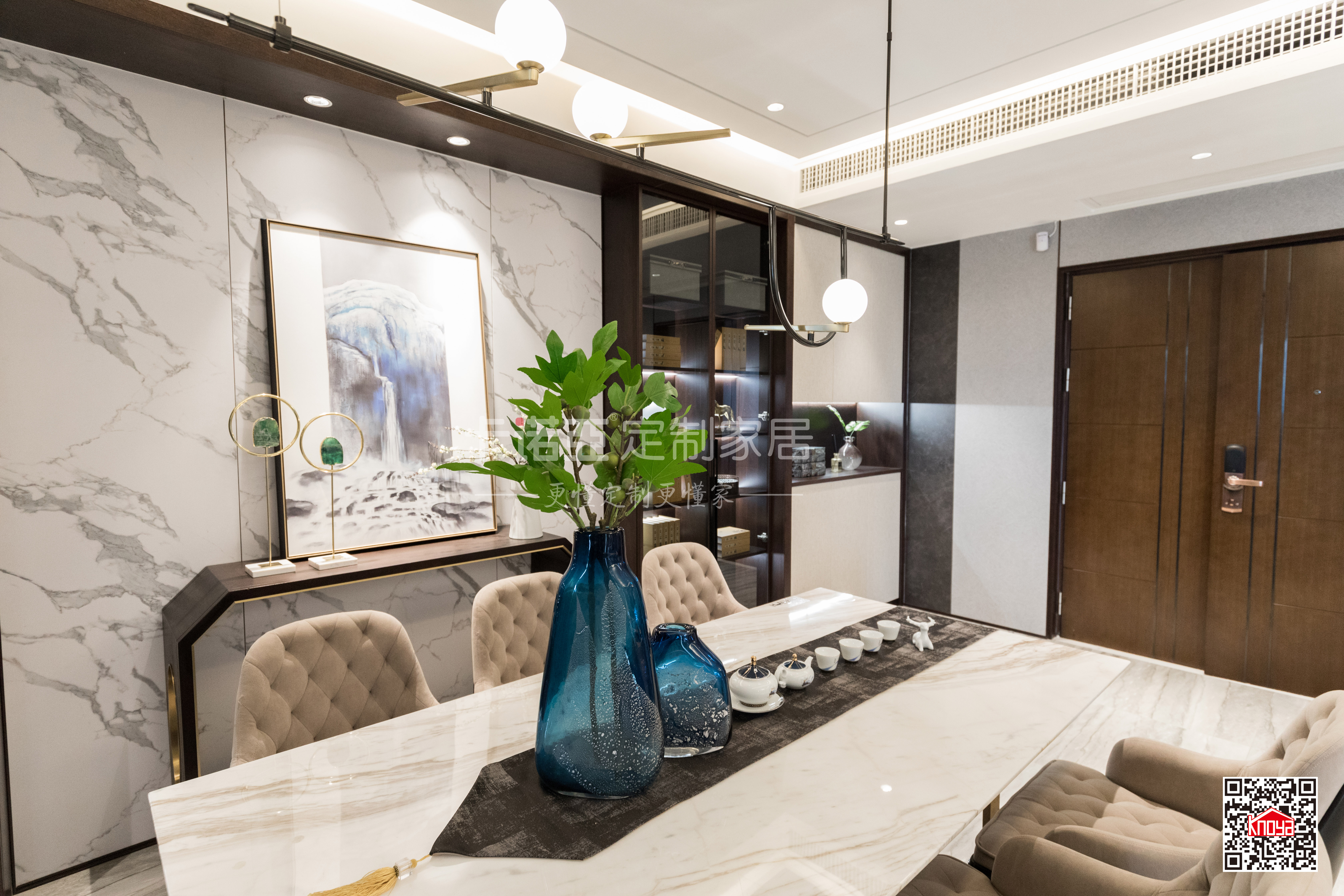 軟裝:玄關SH-B2039b、大理石餐桌CZ022、餐椅CY018、吊燈MP-8013L、窗簾CL033、首飾盒DS-SJ230、藝術畫LTF-19010032、大小花瓶CF2211/CF2212、五金蓋套2箱、香薰、花器、茶具、桌旗等