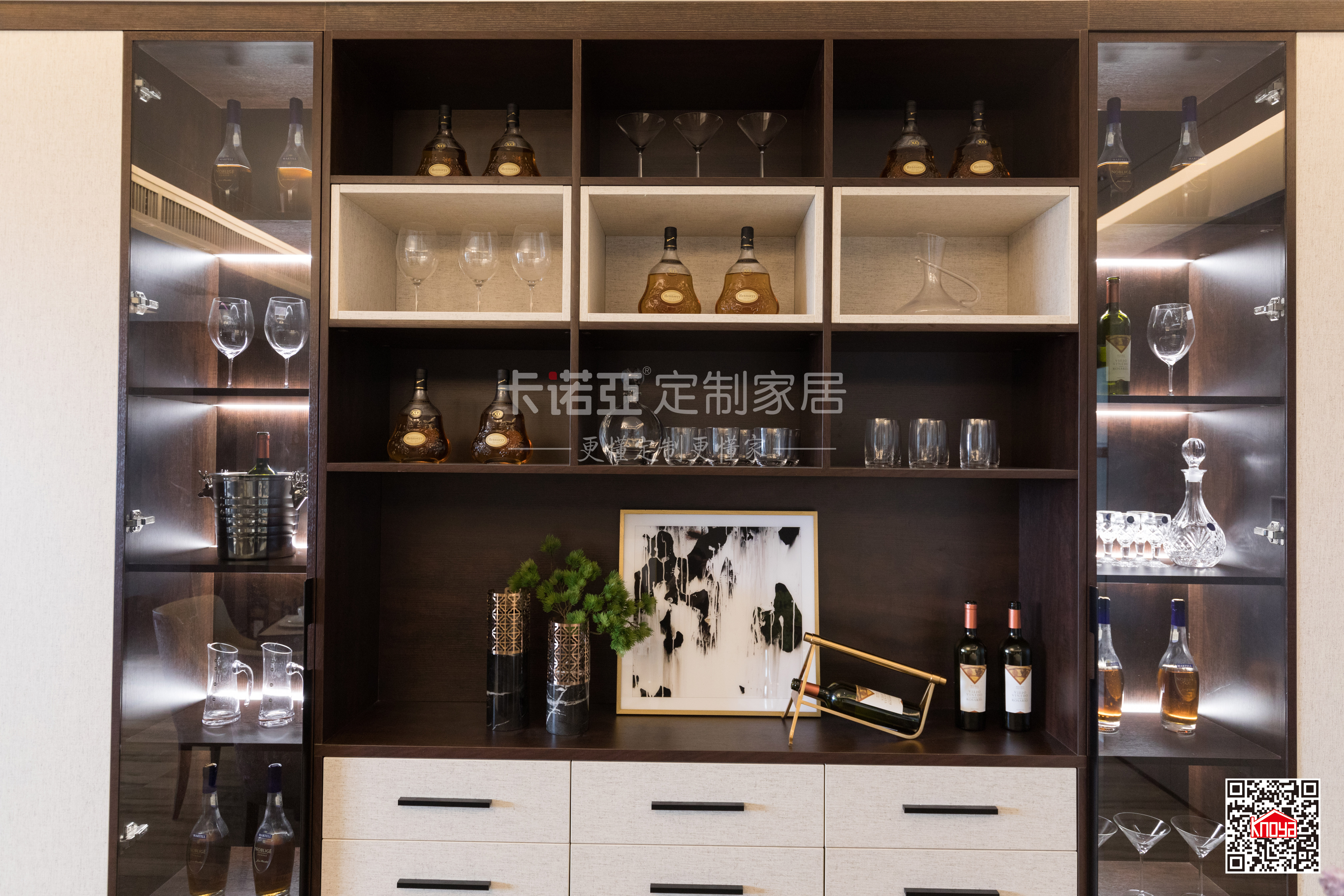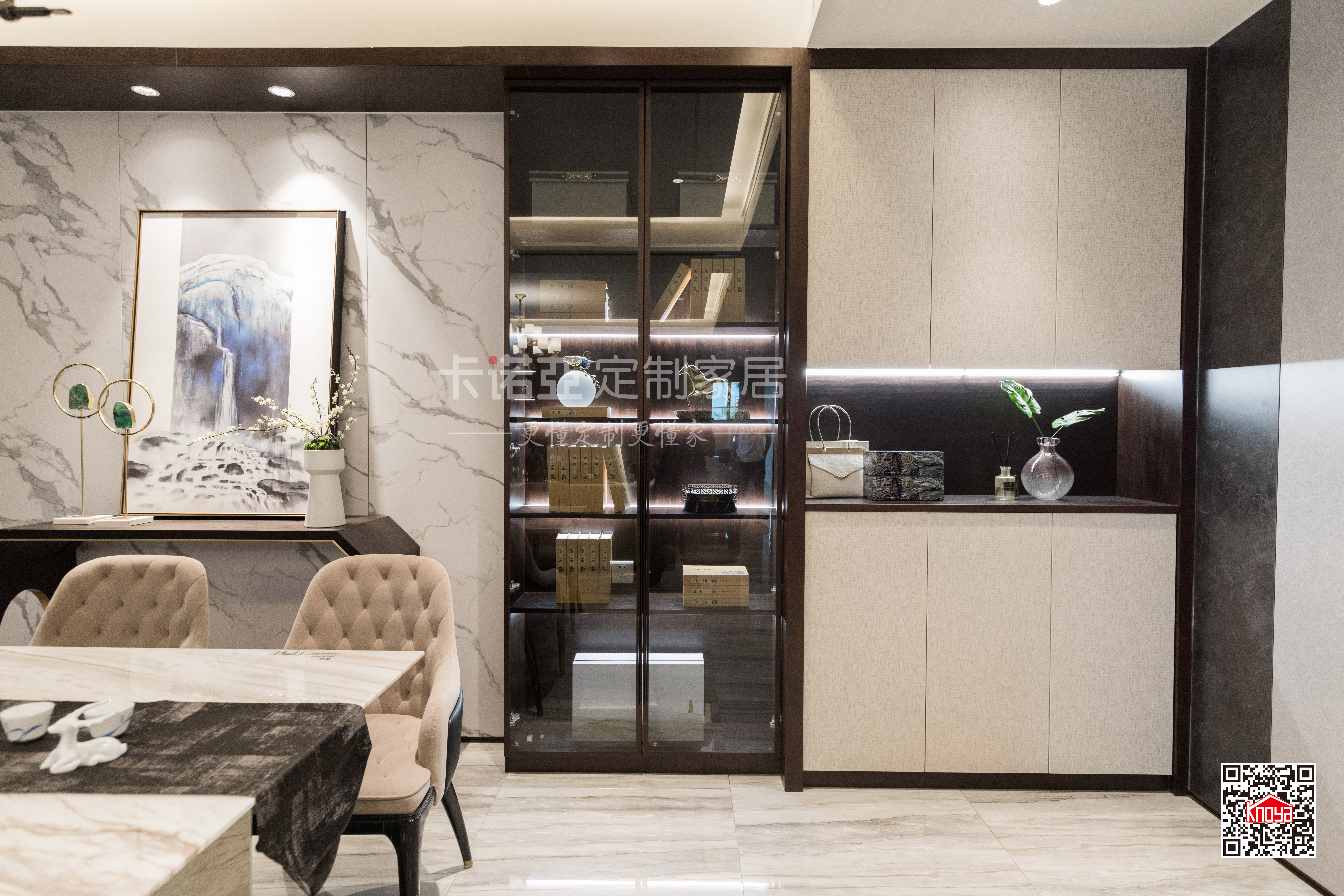黑柜身板材,質地通透,觸感細膩,為空間增加一絲典雅輕奢氣息。