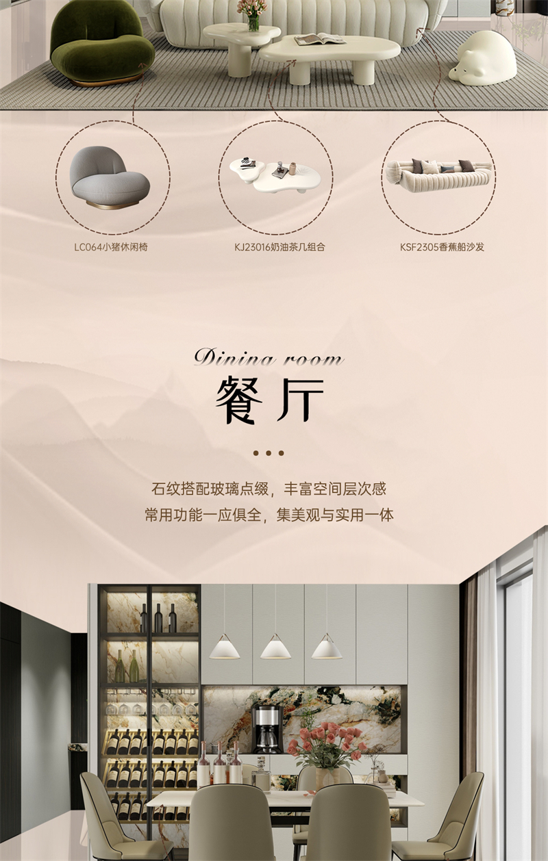 2024年新品系列,至檏 |現(xiàn)代簡約風(fēng)格 借助云水紋的元素,通過流動(dòng)的線條,波動(dòng)的紋理和現(xiàn)代的設(shè)計(jì)手法,打造舒適、放松、愉悅的家居氛圍。