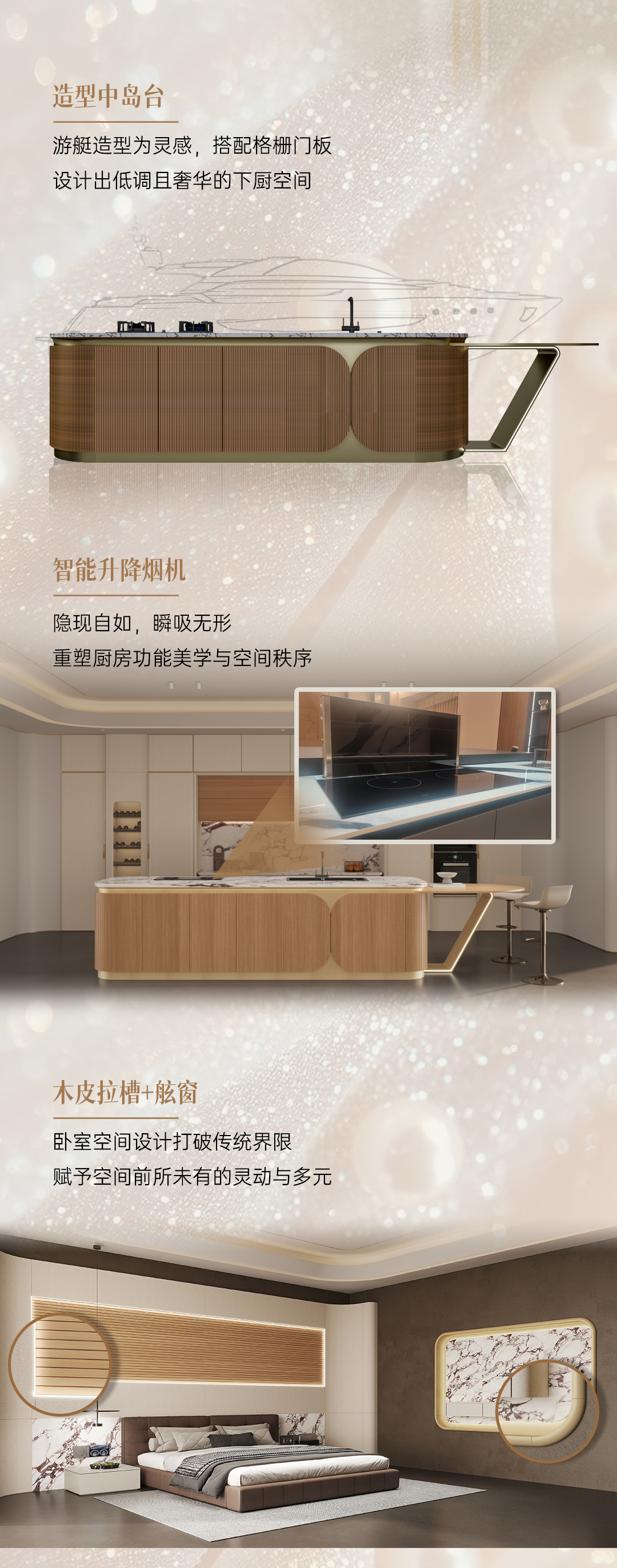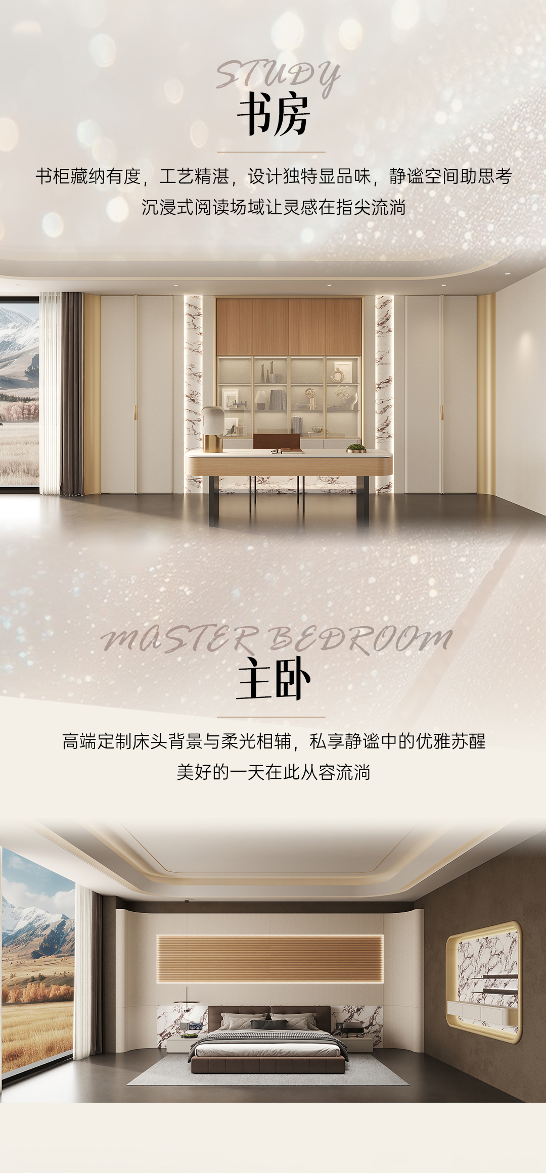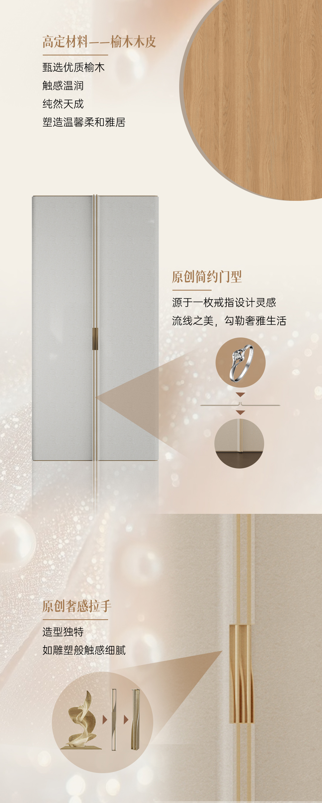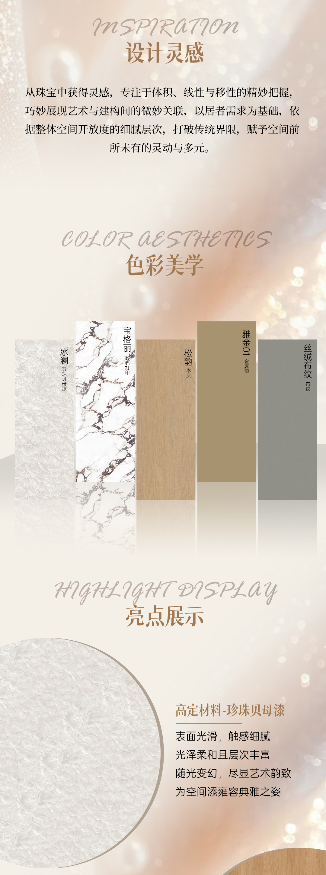 2025年新品系列,格雅系列 |雅致輕奢風(fēng)格從珠寶中獲得靈感,專(zhuān)注于體積、線性與移性的精妙把握,巧妙展現(xiàn)藝術(shù)與建構(gòu)間的微妙關(guān)聯(lián),以居者需求為基礎(chǔ),依據(jù)整體空間開(kāi)放度的細(xì)膩層次,打破傳統(tǒng)界限,賦予空間前所未有的靈動(dòng)與多元。人群定位:30至45歲藝術(shù)家家庭,對(duì)生活品質(zhì)持有極致追求