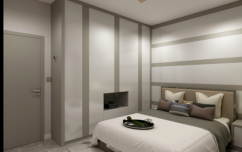 采用尼泊爾柚木+深灰風之谷的撞色創(chuàng)意搭配方案,色系深淺結合,空間線條感及幾何造型強烈,既不顯得單調,又具空間層次感。