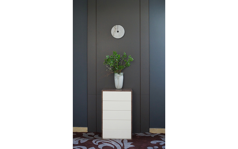 護墻板漢白玉的淺灰、墻面油漆的中性灰、大面積漢白玉護墻板拼貼的深色灰色塊,三種不同飽和度的灰和諧融合,白色點綴,演繹出美輪美奐的空間氣質(zhì),具有非常震撼的感染力。