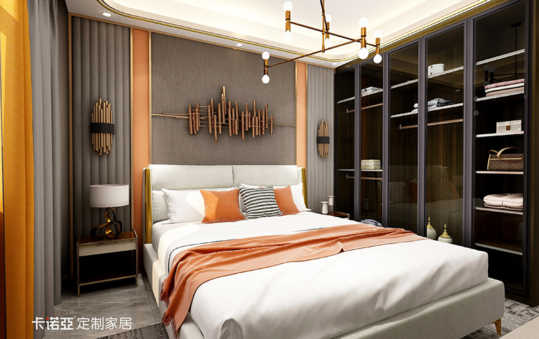高級(jí)黑與高級(jí)灰做為表現(xiàn),黑白的對(duì)比鮮明,總給空間一種大大方方的利落感覺。選用帶有高級(jí)感愛馬仕橙,黑色及碳灰色,來演繹一種“低調(diào)的奢華”,令空間質(zhì)感更為飽滿。