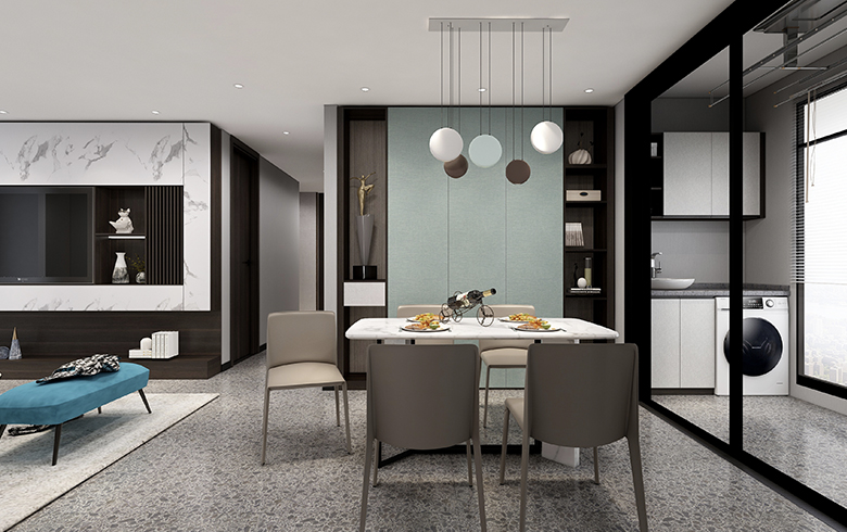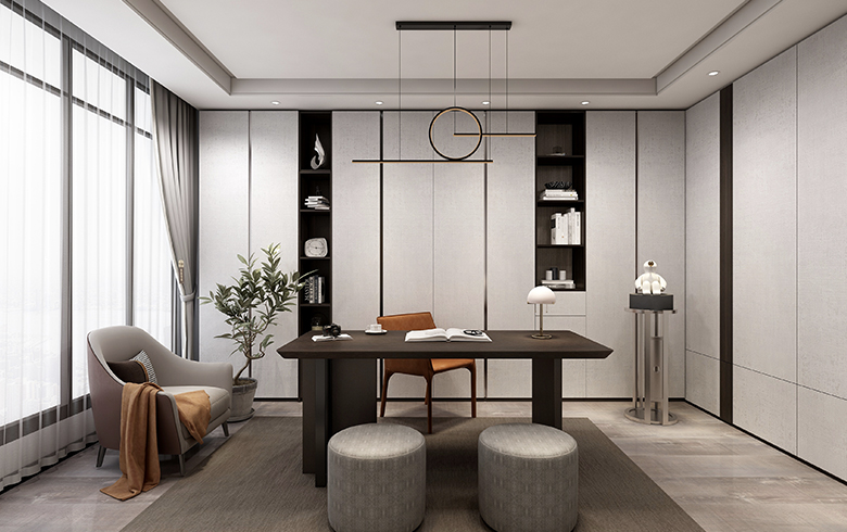 該方案為極簡(jiǎn)系列,現(xiàn)代風(fēng)格。本方案設(shè)計(jì)靈感來(lái)源于鴉頭棕雀的鳥(niǎo)巢,整體空間以木紋色為主,采用淡藍(lán)色為輔助色作為點(diǎn)綴??臻g戶(hù)型面積約為103m2,大致分為客餐廳、陽(yáng)臺(tái)、廚房、衛(wèi)生間、主臥、次臥以及書(shū)房。動(dòng)靜分區(qū),互不干擾。整個(gè)客餐廳色調(diào)有淺灰、黑色兩個(gè)色調(diào),視覺(jué)上顯得統(tǒng)一。廚房設(shè)計(jì)為L(zhǎng)型。主臥床頭背景設(shè)計(jì)兩層,第一層與柜體顏色相呼應(yīng);第二層與柜門(mén)顏色呼應(yīng)。顏色統(tǒng)一,層次與立體感強(qiáng);通過(guò)橙色調(diào)進(jìn)行點(diǎn)綴,增加空間的靈動(dòng)性。次臥的主色調(diào)是淺灰色,是深受現(xiàn)代主流的配色,給人一種親近的感覺(jué)。書(shū)房背景以淺色與護(hù)墻的顏色統(tǒng)一,但橙色最為點(diǎn)綴,不會(huì)顯得單調(diào)沉悶。