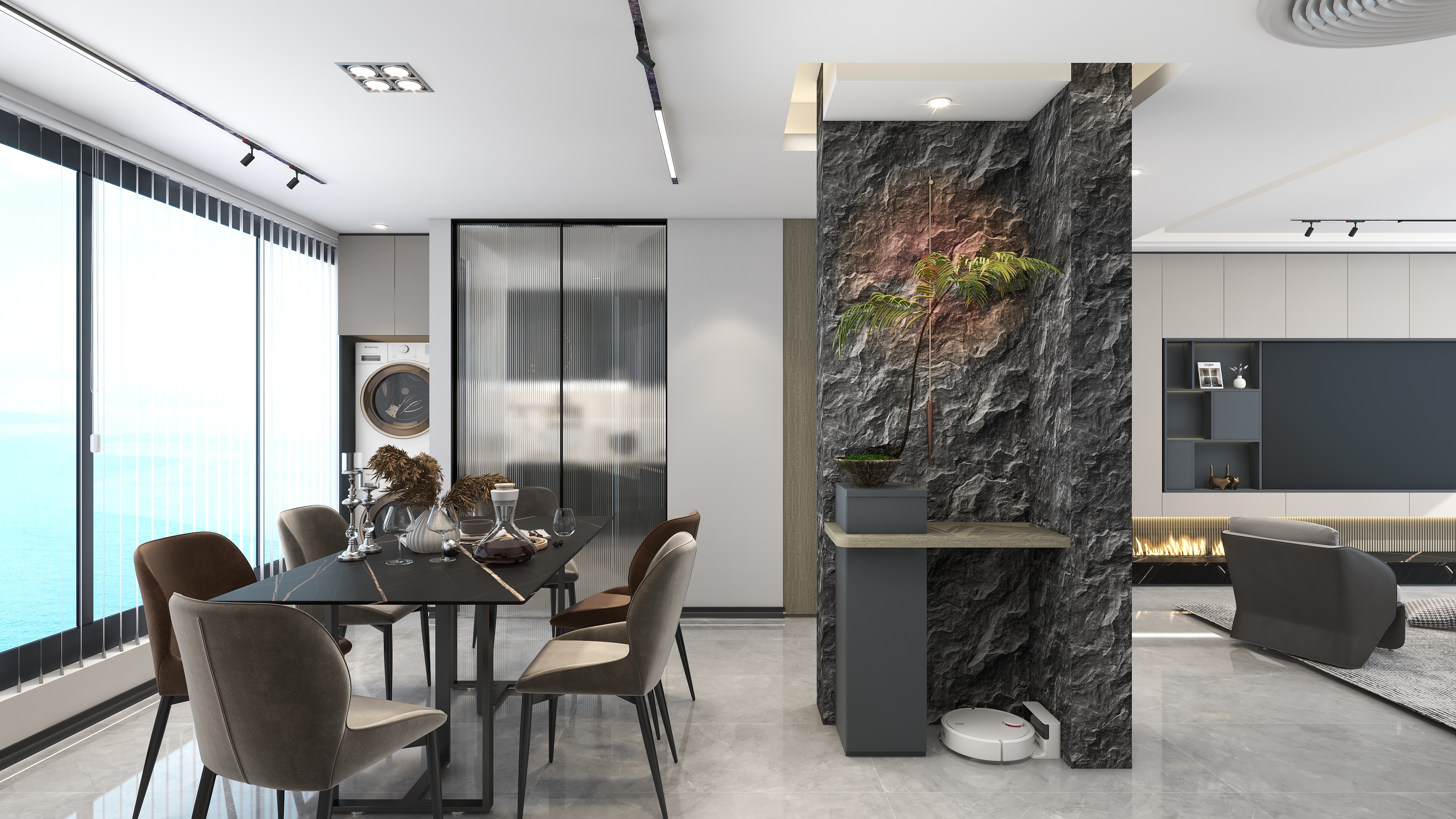 《櫟白》本案是四口之家,有三歲的孩子和老人,設(shè)計師根據(jù)每個人的需求與習(xí)慣重新規(guī)劃了空間,保留了三個房間,整體色調(diào)運用了莫蘭迪的配色靈感,卡諾亞主要打造的是柜、墻、門一體化設(shè)計,同色系的高顏值整家,整體以收納娛樂生活為一體,以靈活互動與自由開放為主旨,適當(dāng)?shù)牧舭祝瑑?yōu)化細(xì)節(jié),衍生個性,締造出視野闊朗的簡約格調(diào)。