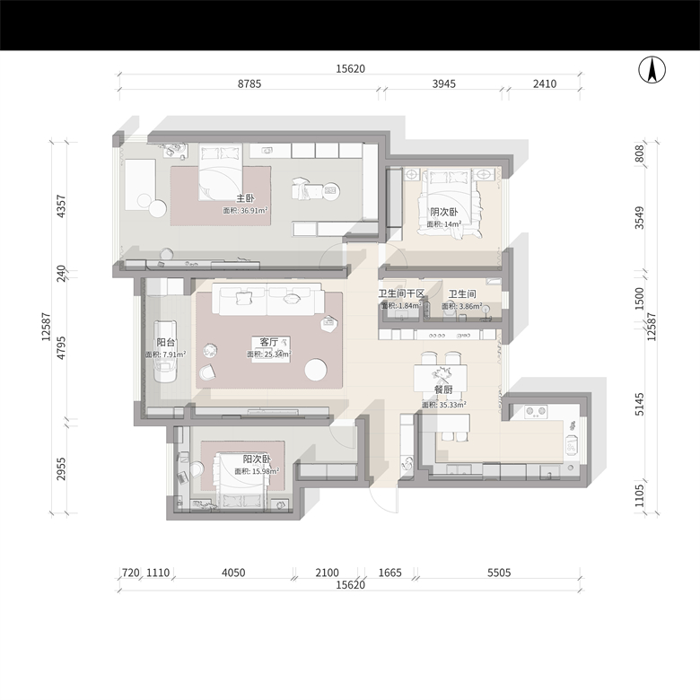 嚴(yán)謹(jǐn)?shù)闹刃蚝凸δ茉O(shè)置之下,人在空間中也擁有更大的自由度。尊重每一位家庭成員的生活習(xí)慣與需求,關(guān)心每個人的情緒與狀態(tài),去除多余的裝飾,讓空間更加簡約舒適,才是理想的家。設(shè)計理念:大繁至簡,“至繁”歸于“至簡”,至簡源于至繁,以人為本,注重實用,崇尚簡潔質(zhì)樸,回歸自然,直指本心。整家視界 全案生活|第六屆卡諾亞整家設(shè)計精英聯(lián)賽