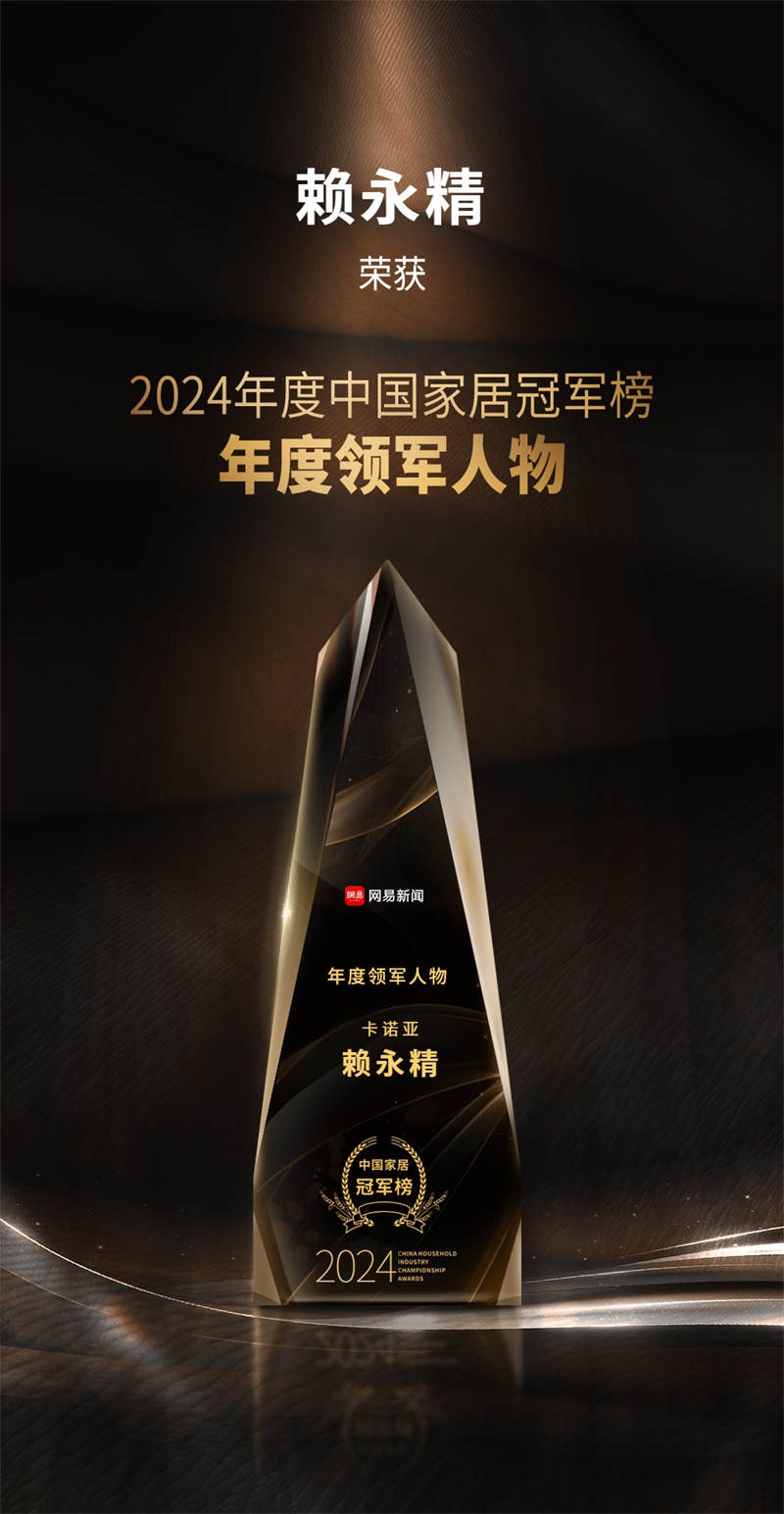 2月10日,網(wǎng)易“2024年度中國家居冠軍榜”重磅發(fā)布,以榮譽致敬榜樣,匯聚行業(yè)力量,助力家居產(chǎn)業(yè)蓬勃發(fā)展??ㄖZ亞憑借引領行業(yè)創(chuàng)變的輕高定品牌影響力及差異化的臥室系統(tǒng),從眾多品牌中脫穎而出,榮膺“匠心質造品牌”獎項,以雄厚品牌勢能,助力推動美好生活方式定制。同時,卡諾亞董事兼副總裁賴永精以其對行業(yè)的卓越貢獻,榮獲“年度領軍人物”稱號。