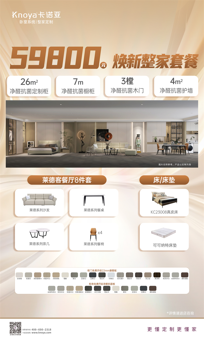 59800元全屋升級凈醛抗菌家套餐,柜墻門櫥全配齊