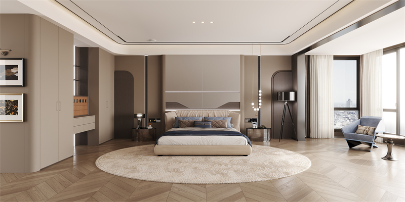 ·高級配色美學(xué):意式輕奢多以咖色、高級灰為主色調(diào),搭配金屬漆點(diǎn)綴,在視覺平衡中暗藏精致韻律,讓家成為穿著西裝的藝術(shù)家,在克制的低飽和度色彩語言里,生長出永不褪色的高級格調(diào)。