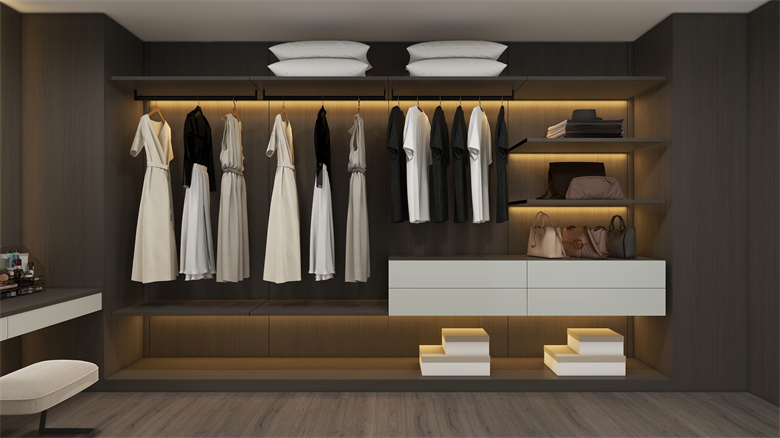 衣帽間以極簡疏闊布局,楓沙木、生椰灰與榛果咖搭配,讓衣物、鞋子被溫柔對待,挑選穿搭成了 “欣賞小確幸” 的過程。羅亞全屋定制用 C 調(diào)系列證明:好的定制讓家與生活同頻,其 “懂設計,有顏值” 的背后,是對年輕人生活態(tài)度的尊重與品質(zhì)的堅守。