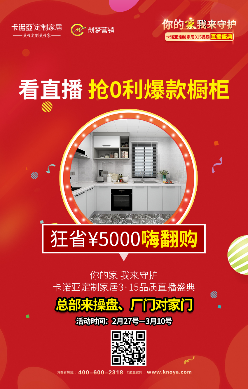 PS: 最新上線的「卡諾亞3.15品質直播盛典—在線搶工廠,直播搶福利」,足不出戶定制夢想廚房,爆款廚柜直降¥5000,更有機會搶巨額百萬紅包雨,抽取家紡、床墊、電子秤等各類大獎喔~