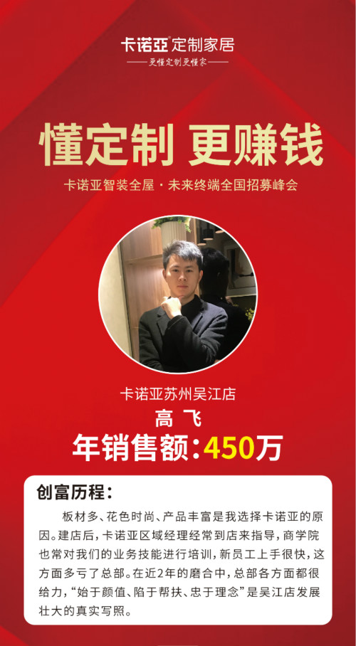 想要加盟全屋定制品牌賺錢,以上三點是非常關鍵的因素,希望大家能對此有所了解。加盟全屋定制選擇卡諾亞定制家居,作為中國至早的定制家居品牌,準上市公司,行業(yè)生產(chǎn)規(guī)模前五,產(chǎn)品涵蓋5大基材、6大空間、7大風格及20個系列,有足夠的運營經(jīng)驗和資本,有系統(tǒng)的管理模式和營銷體系,能夠給予專賣店專業(yè)的市場指導和營銷建議,讓終端經(jīng)銷商更具戰(zhàn)斗力,盈利有保障。
