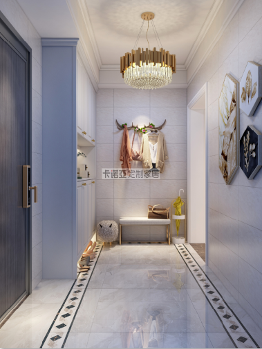 十年后,設(shè)計師在玄關(guān)處增加鞋柜空間,還規(guī)劃了掛放區(qū)、換鞋凳和換季頂柜。