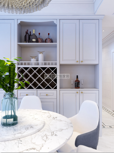 餐廳設(shè)計比較簡潔,大理石質(zhì)感的餐桌,加上簡約造型的靠背椅,輕奢的金屬桌腳,淺色墻面再配上歐式吸塑造型的柜門,一切都美得剛剛好。餐邊柜到頂設(shè)計,強大的收納功能,讓客廳不再臟亂雜。