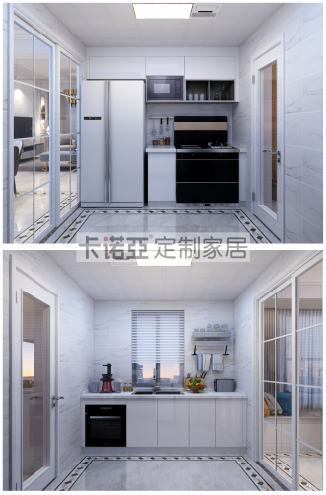 整體廚房采用白色與淺色大理石地磚搭配,波打線花片點綴,將整個廚房色調(diào)提亮,顯得寬敞、視覺豐富,讓人愛下廚。