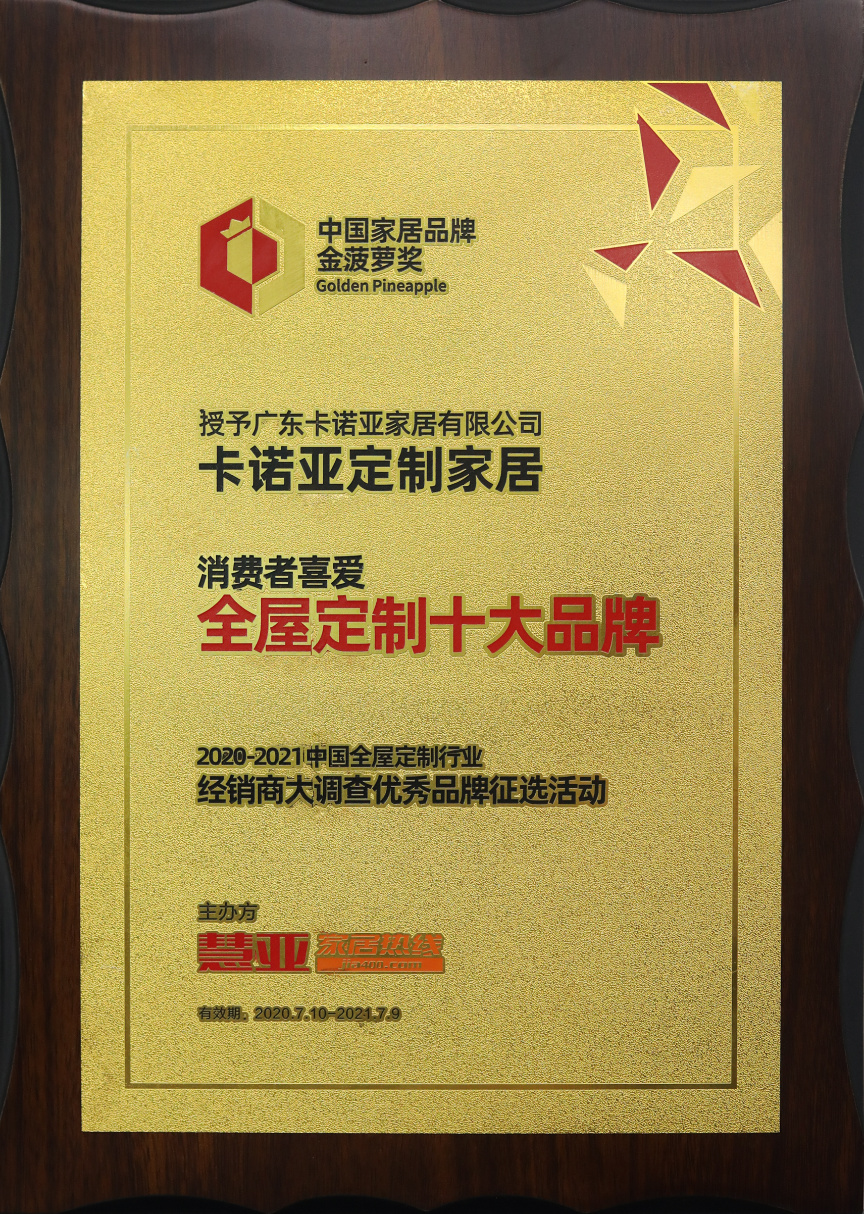 7月10日,2020第五屆中國大定制家居營銷發(fā)展論壇暨家居品牌金菠蘿獎盛典在中國建博會(廣州)舉行??ㄖZ亞副總經(jīng)理兼營銷總經(jīng)理賴永精,作為發(fā)言嘉賓出席會議,并分享“提升數(shù)字化能力,助力家居業(yè)發(fā)展”主題內(nèi)容。同時,卡諾亞憑借專注定制家居19年的企業(yè)實力和品牌魅力,榮獲“中國家居品牌金菠蘿獎·消費者喜愛全屋定制十大品牌”獎項。